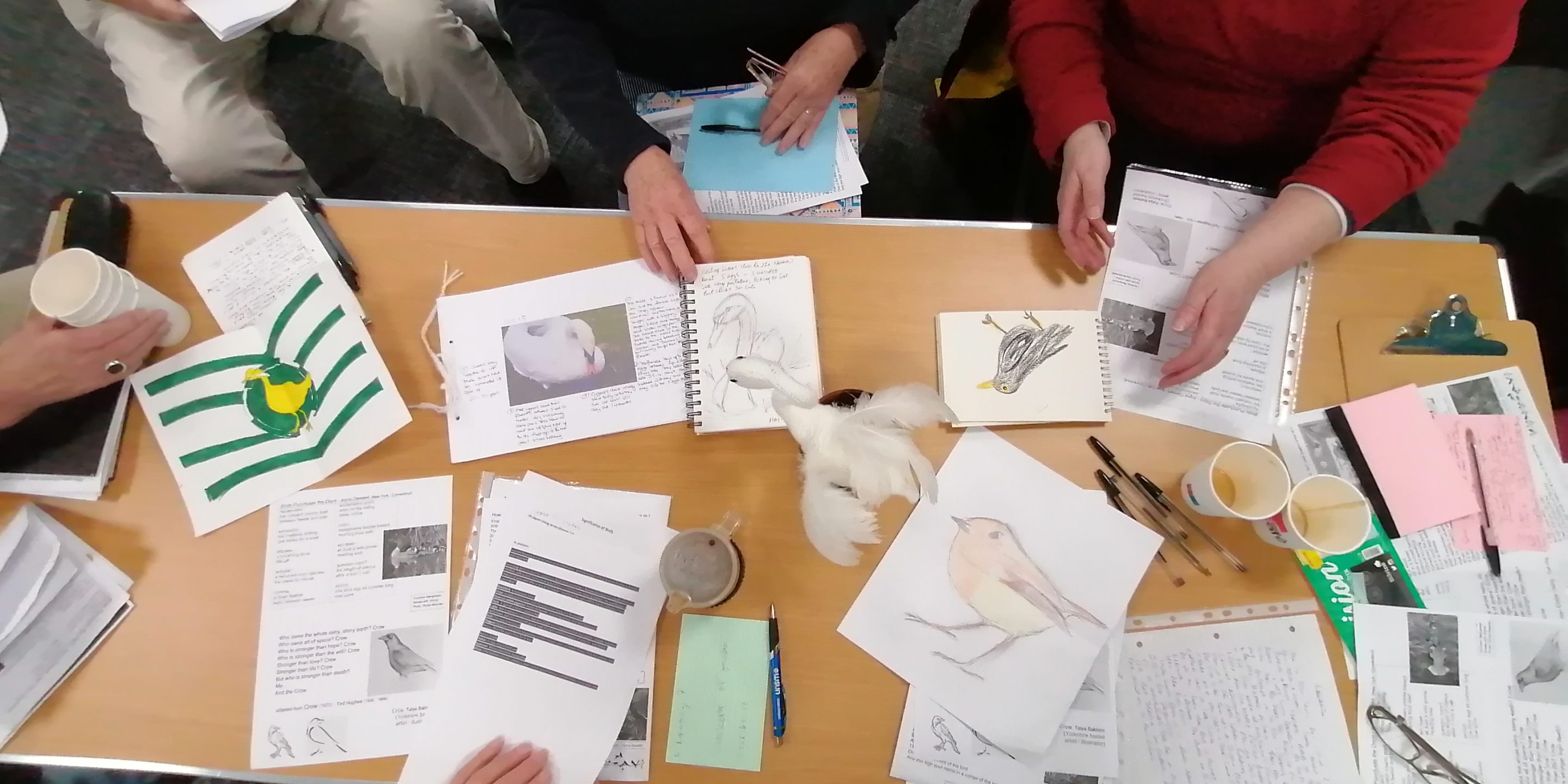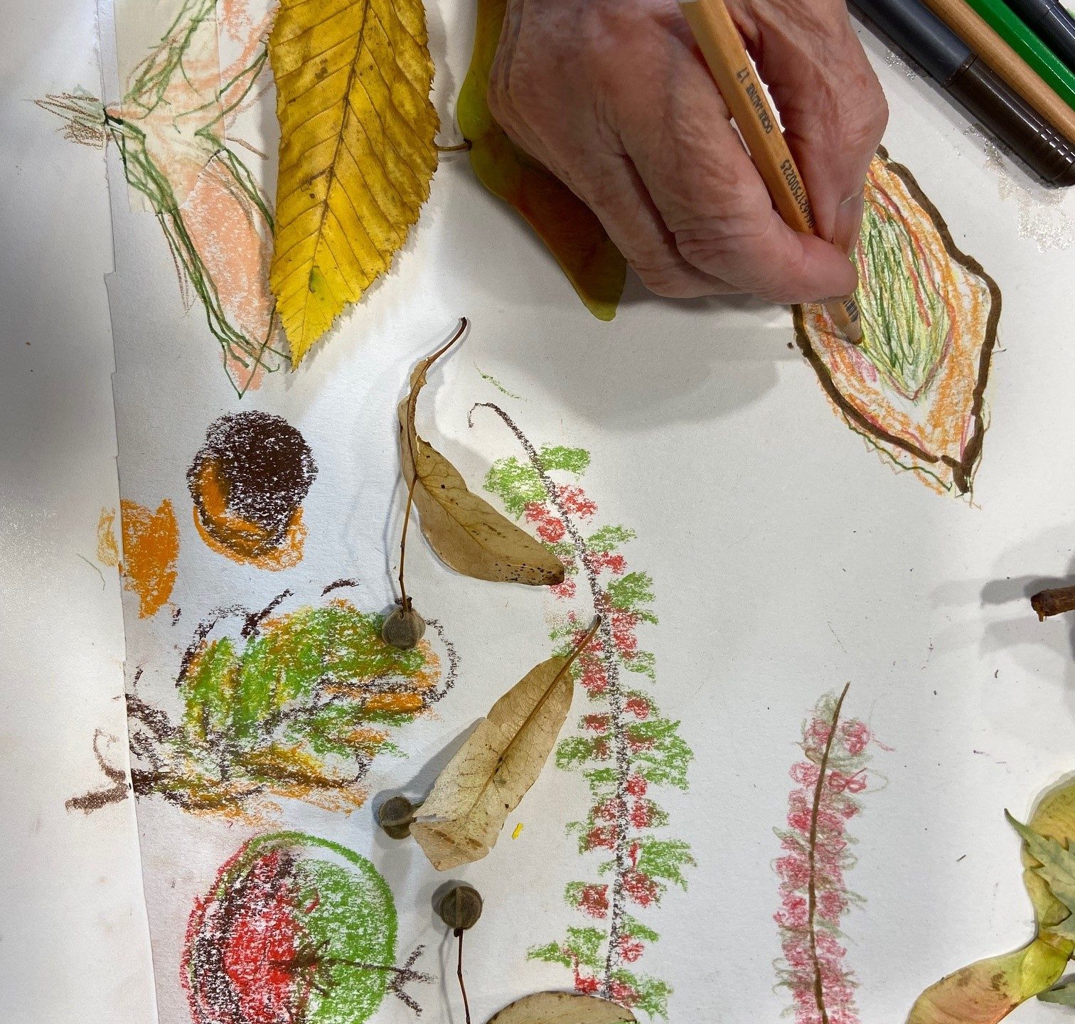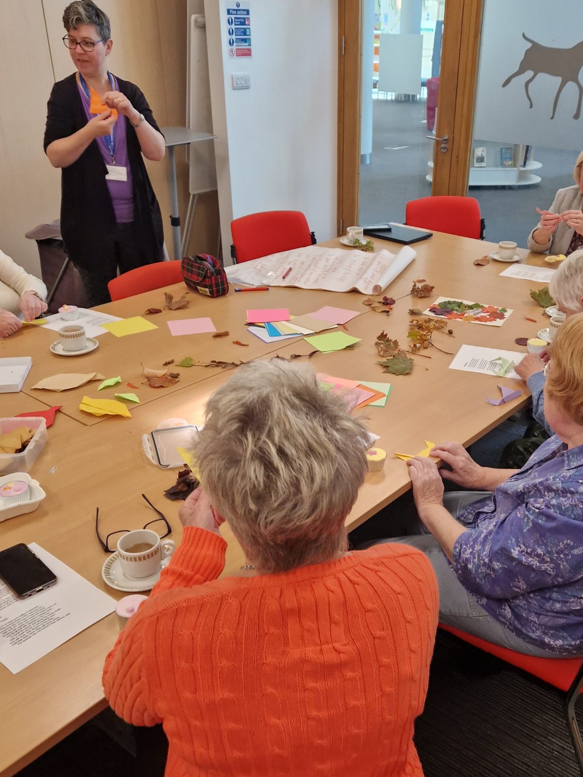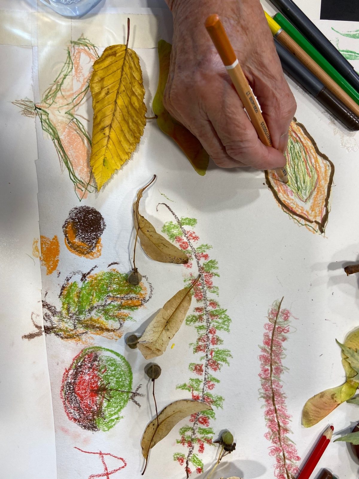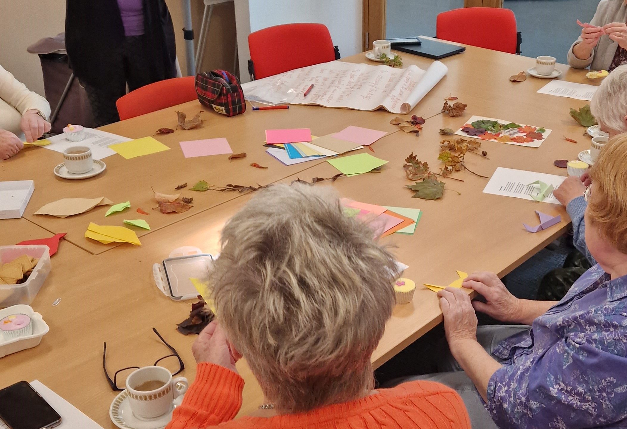 Some participants produce creative outputs such as illustrated cards, poetry, and artwork, others just focus on the conversations.