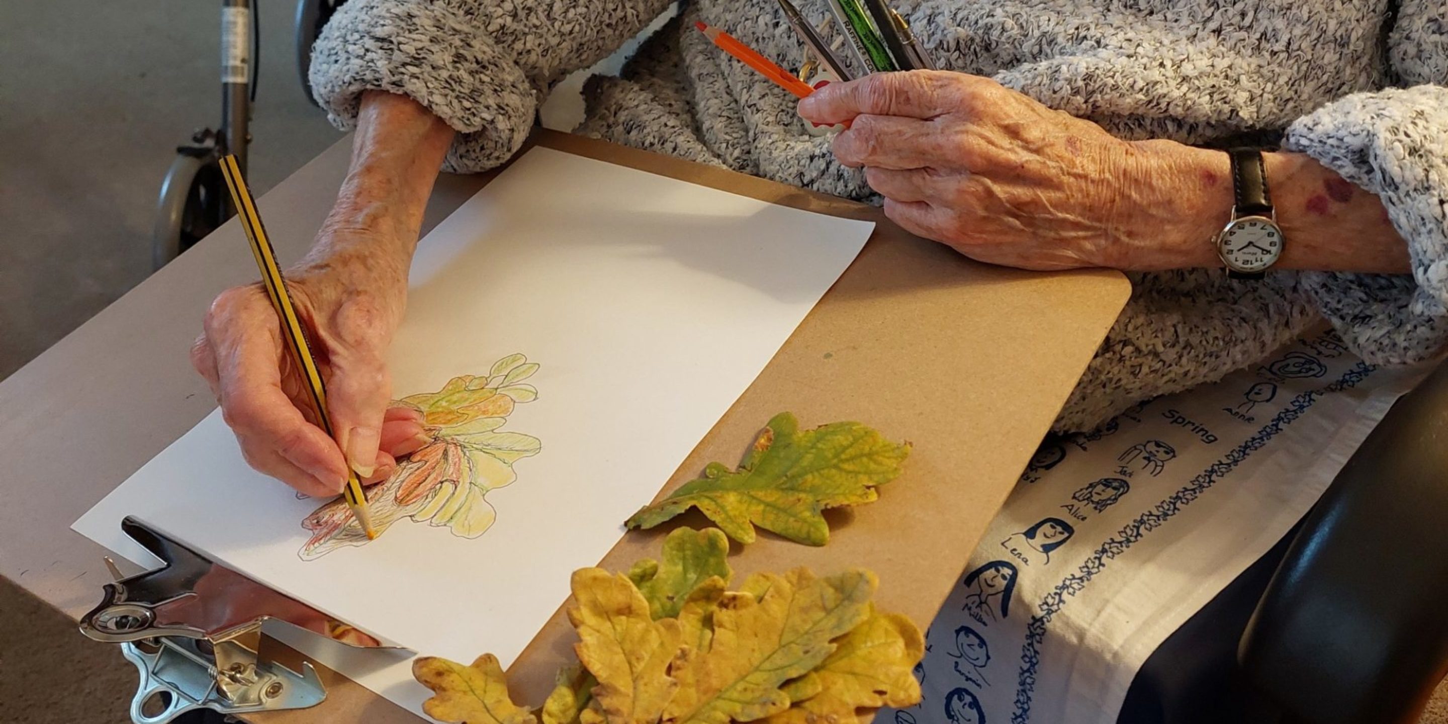 ‘Noticing Nature’ is a series of three art workshops designed for older people of all abilities. It is delivered by local artist James Aldridge in small group settings and with individuals in their own homes.
