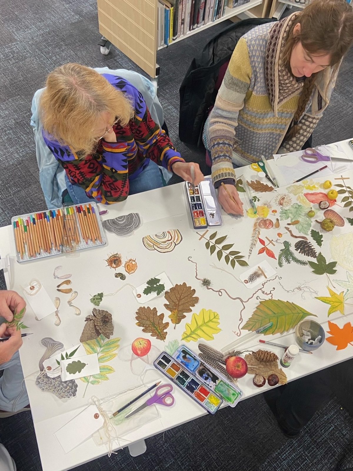 It provides an opportunity for people to take some time to sit, notice and chat about the local natural environment and use art to record what they notice, creating journals and collections.