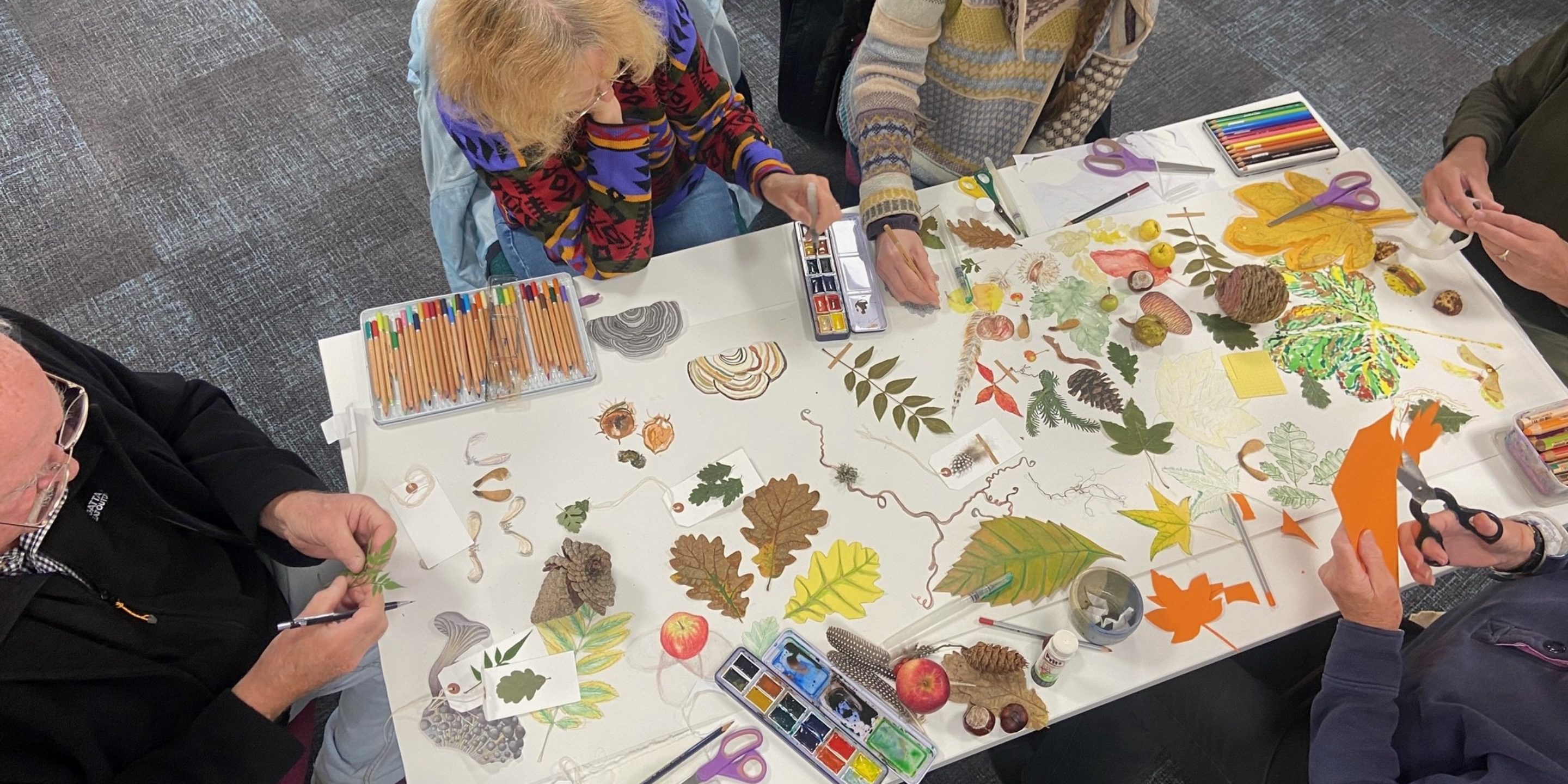Individuals at home or group visual art workshops responding to local nature.